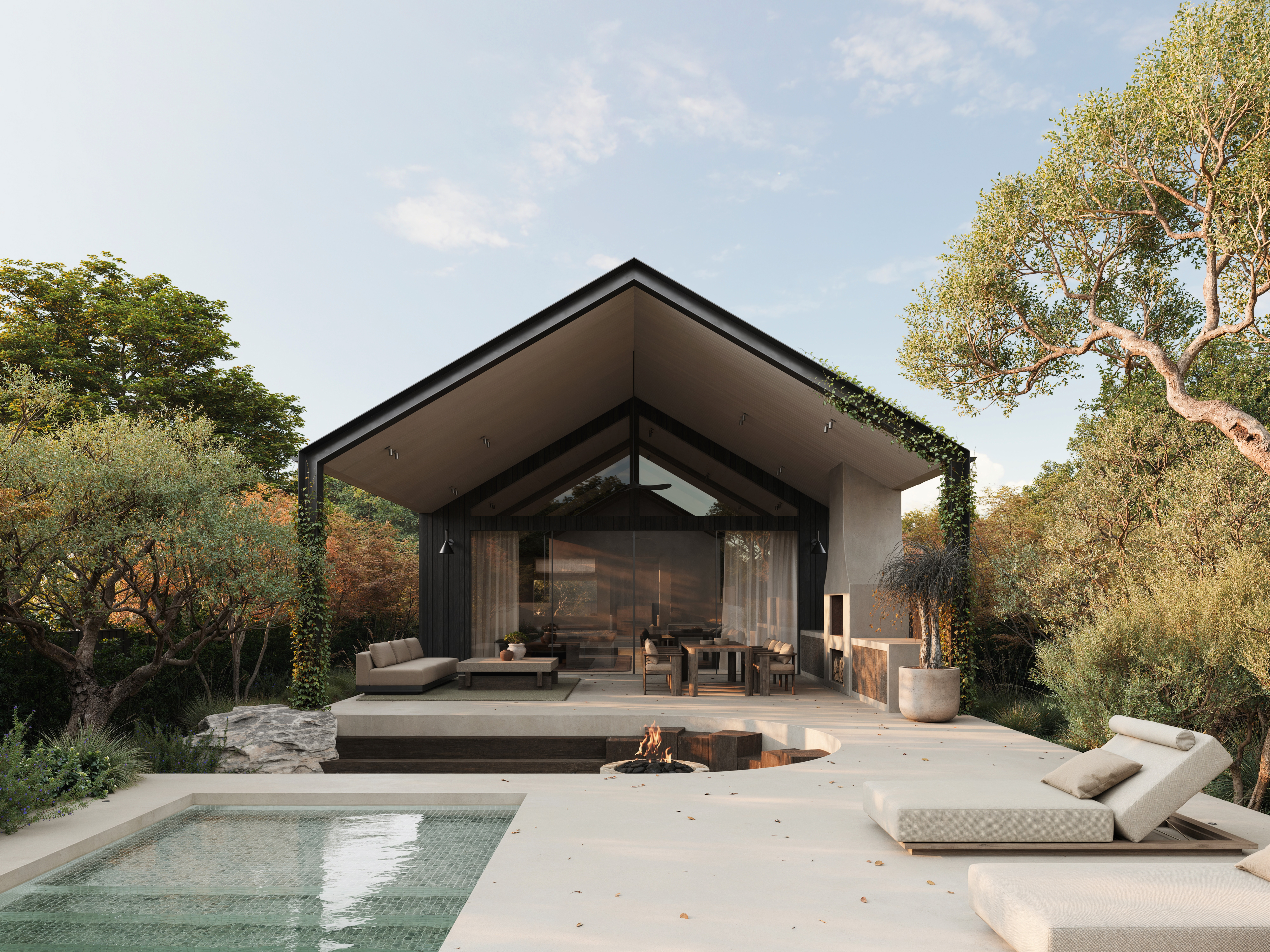 Designed to sit harmoniously within Bowral’s lush green surrounds, the interiors embrace dark, warm tones that gently offset the ever-changing hues of the natural environment.